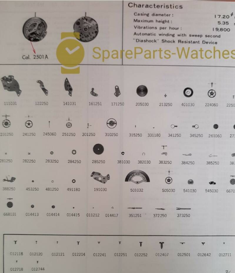 Our selection of spare parts for this calibre: Seiko 2501A, 17 jewels