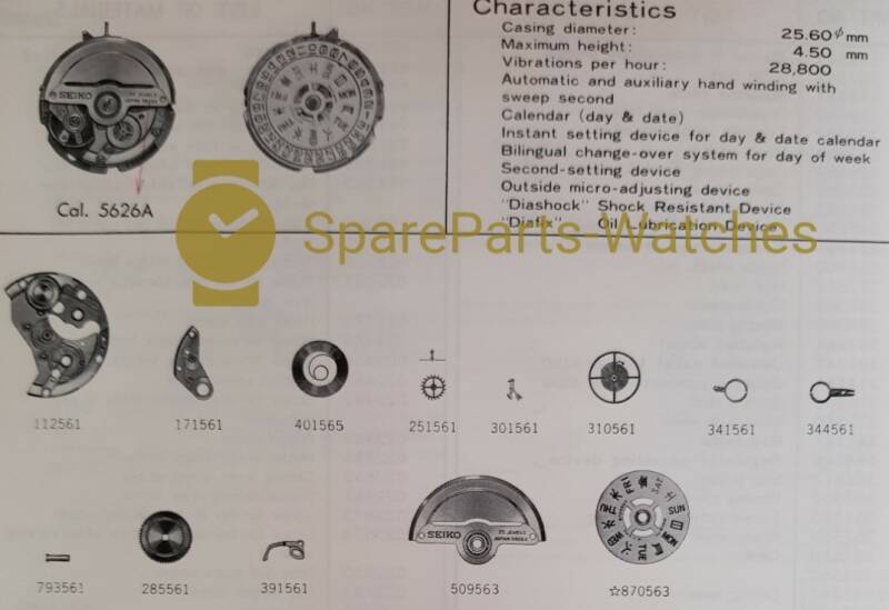 Our selection of spare parts for this calibre: Seiko 5626A, 25 jewels Basic is Seiko 5606A, Except ( we have in stock: 793.561 )