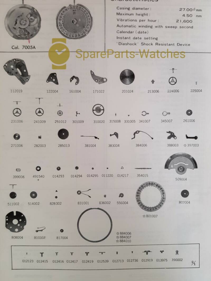 Our selection of spare parts for this calibre: Seiko 7005A, 17 jewels