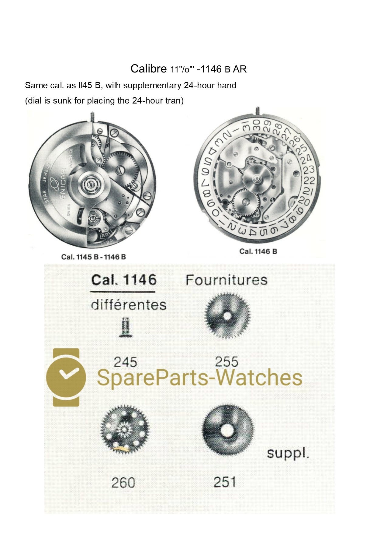 The caliber 1146 have 24-hour hand, special parts are 251 Hour Wheel, 255 Hour wheel and 263 Minute Wheel