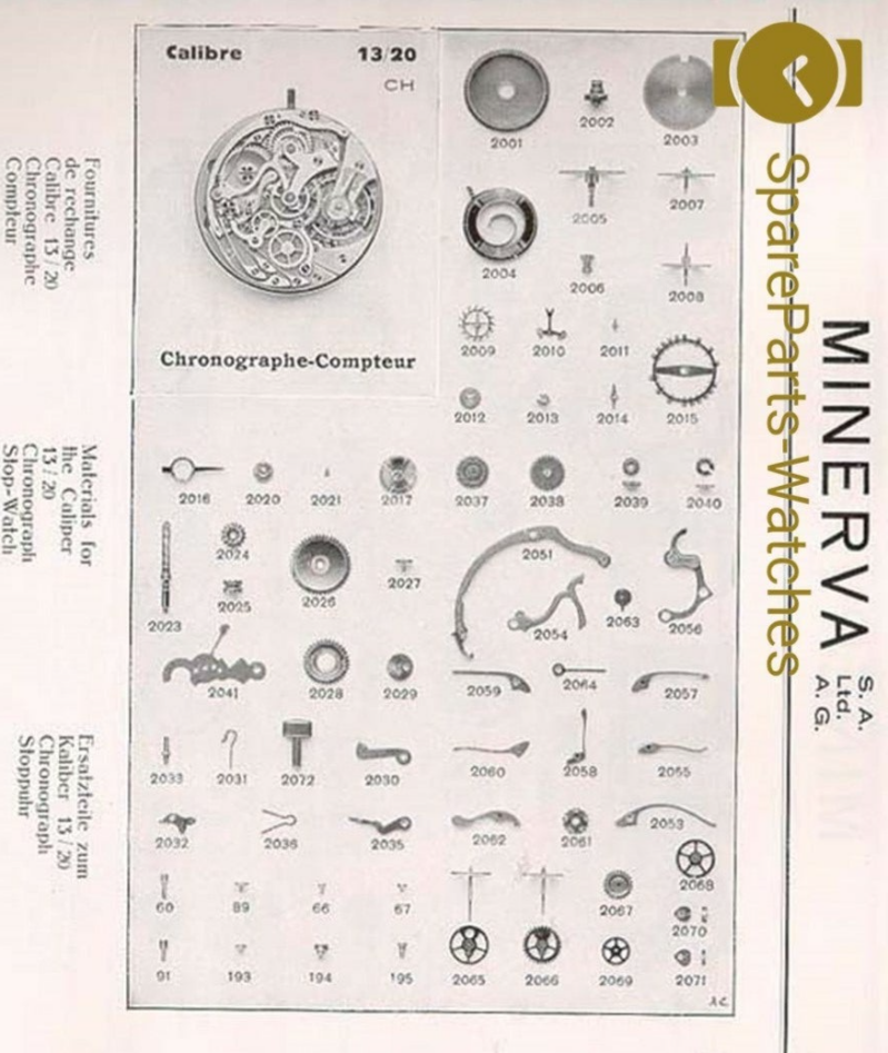 Our selection of spare watch parts for this calibre: Minerva 13-20