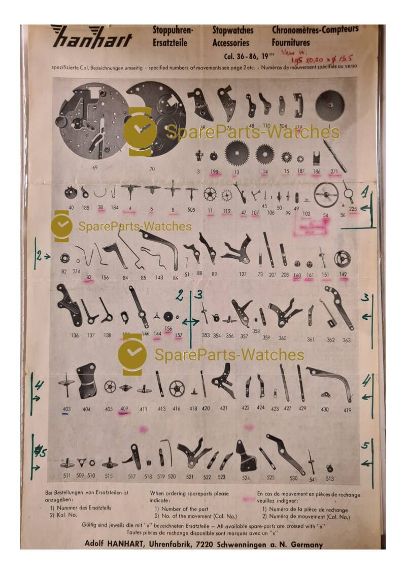 Our selection of spare parts for this calibre: AH - Hanhart - AH36