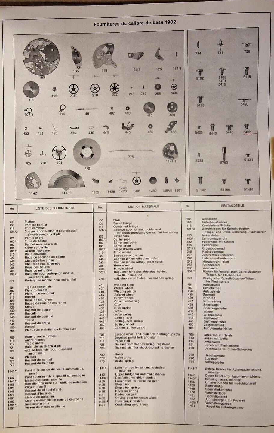 For this calibre we acknowledge the following parts: